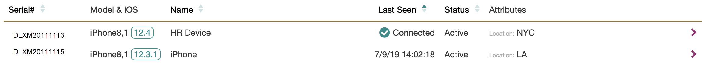 • The admin creates a Custom Attribute called [Location] and populates it with the corresponding city data. In this case, some devices are going to NYC, while some are on their way to LA.