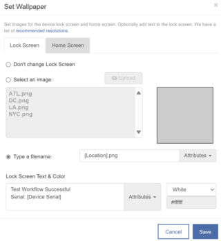 • Set Wallpaper also supports Attributes, providing the ability to personalize the lock screen for every device with a single Workflow.