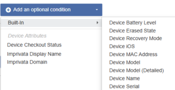 5. Click Add an optional condition to select from the lists of built-in attributes and custom attributes.