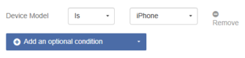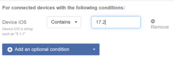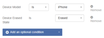7. Click Add an optional condition to apply additional conditions to the scheduled automation rule.  For example, you can set a schedule to only upgrade devices on a specific version of iOS.