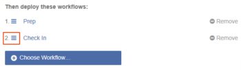 • If you do use multiple workflows, the order of workflows are important. Mobile Access Management will run the listed Workflows in order. Arrange the Workflows to run in the desired order by dragging on the three-lined hamburger icon.