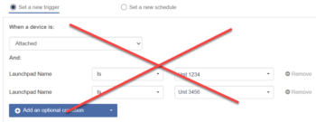 For example, you may want both the Launchpad “Unit 1234” and the Launchpad “Unit 3456” as conditions. Here’s the wrong way to do that: