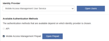 - Set the Authentication Method to Mobile Access Management Pinpad.