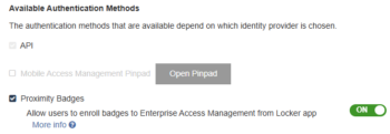 - For the Authentication method, select Proximity Badges.