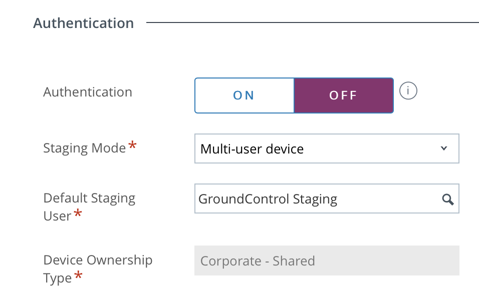 The device must be initially enrolled into Workspace ONE UEM with the Staging Mode option set to Multi-user device. This enables MAM to manage the Workspace ONE checkout/in features.