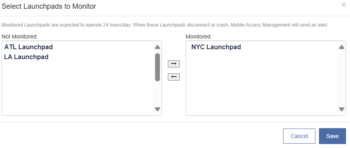 When Launchpad Monitoring is enabled, Mobile Access Management will notify you when: