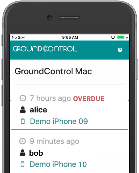 This icon opens a web app within Safari, displaying a list of checked out devices from the same Launchpad. It displays each device name, the user ID, and the time the device has been checked out.