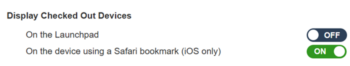- To allow the display of a bookmark on each checked out device, switch the On the device using a Safari bookmark setting to ON.