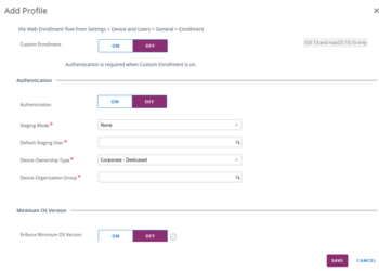 For iOS devices you may optionally add an Enrollment Profile for touch-free enrollments of non-DEP devices.