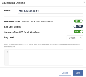 - Custom Launchpad Options — When instructed by Imprivata Support, you may add custom options here to change the Launchpad default behavior.