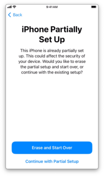 - Devices that have been updated, force recovered, or erased may display an ‘iPhone Partially Set Up’ message on the screen afterwards.