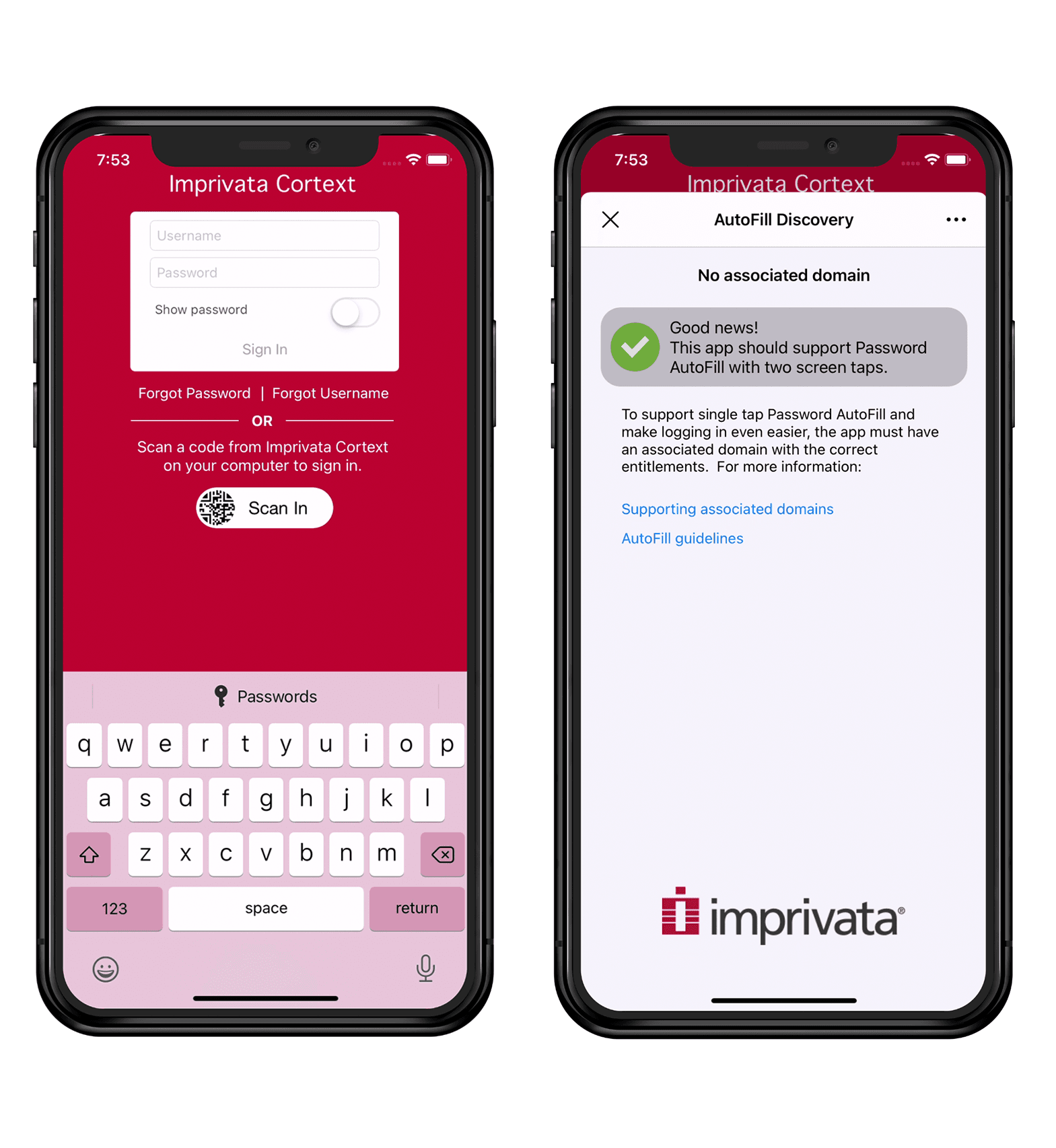 Imprivata AutoFill Discovery, now available on the App Store, allows you to validate if your applications natively support iOS’s Password AutoFill framework.